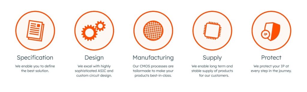 Our engineers work directly with your teams – across specification, feasibility, safety assessment, prototyping, release, and ramp-up – to ensure delivered ASIC and System-in-Package (SiP) solutions are right for your market, first time. The result: market-differentiating, long-life sensors or modules that accelerate your competitiveness, whether for smart sensor interfaces, encoders, or drivers.